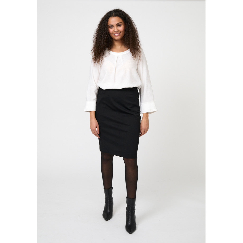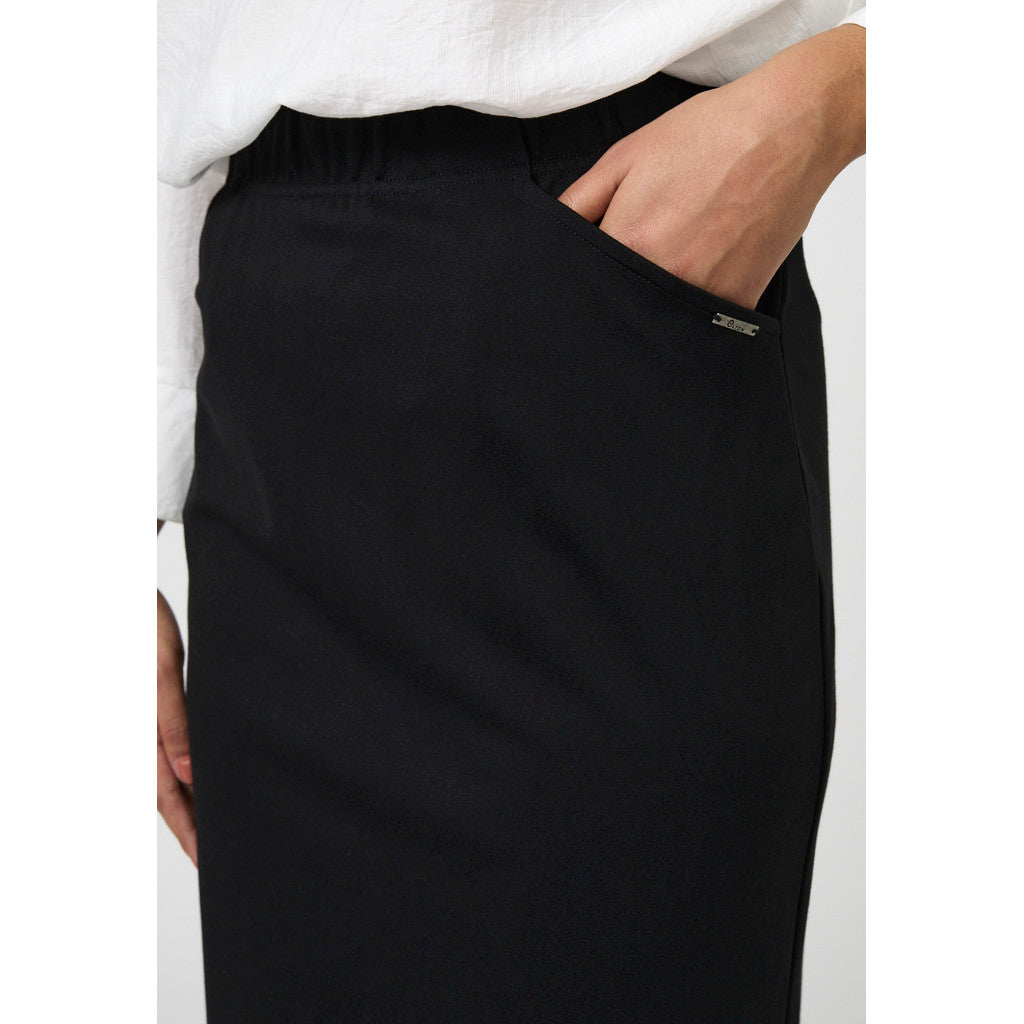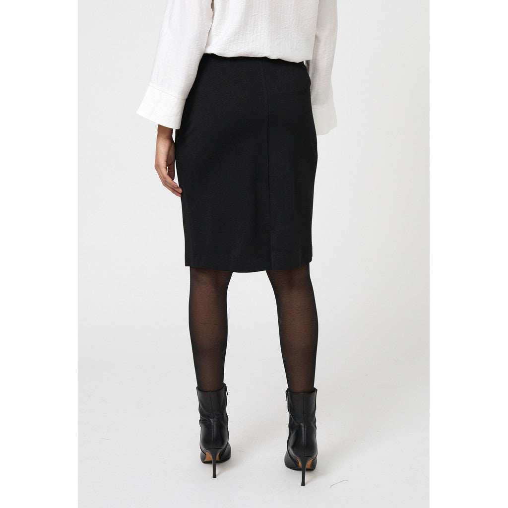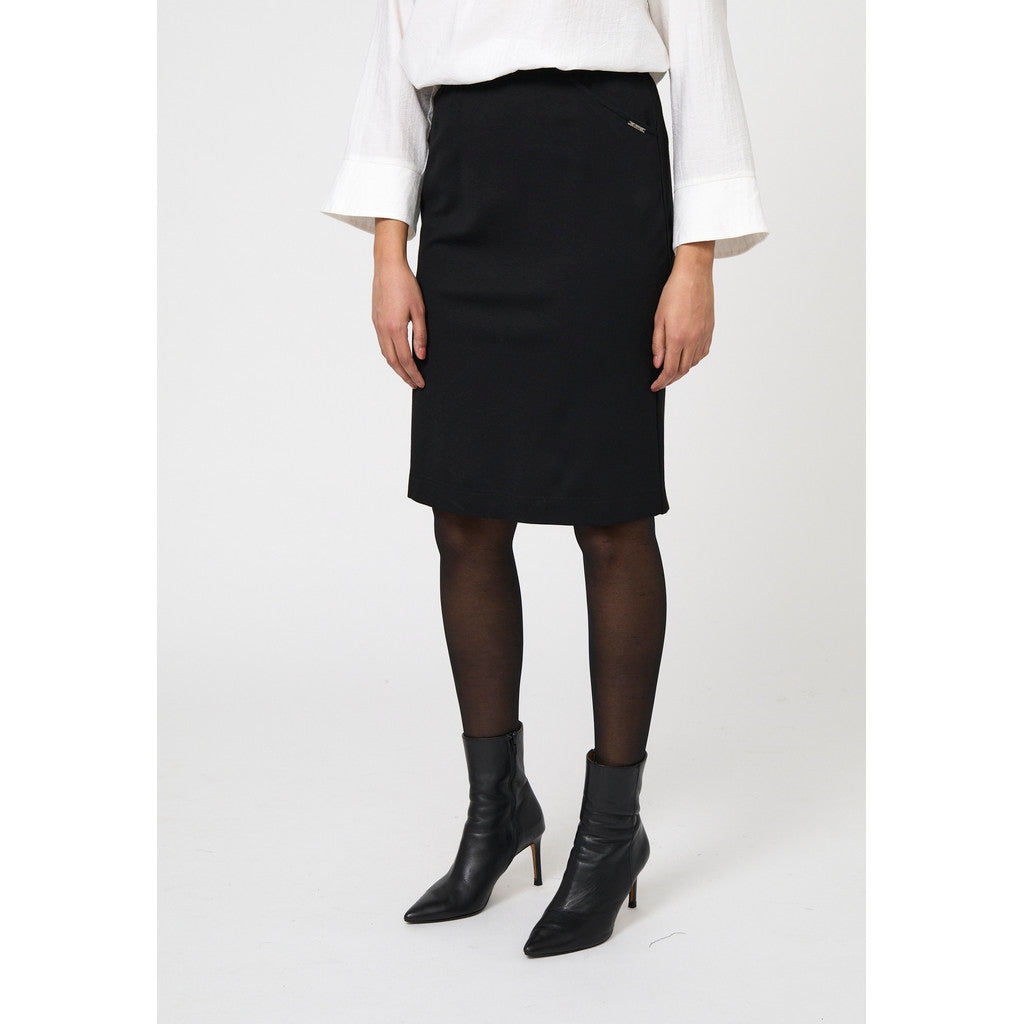 Denna klassiska kjol kombinerar vackert elegans och funktionalitet. Med sin figurnära form och stretchiga tyg framhäver den din siluett utan att kompromissa med komforten. Den minimalistiska designen gör den mångsidig och enkel att styla både för arbetsdagar och speciella tillfällen.