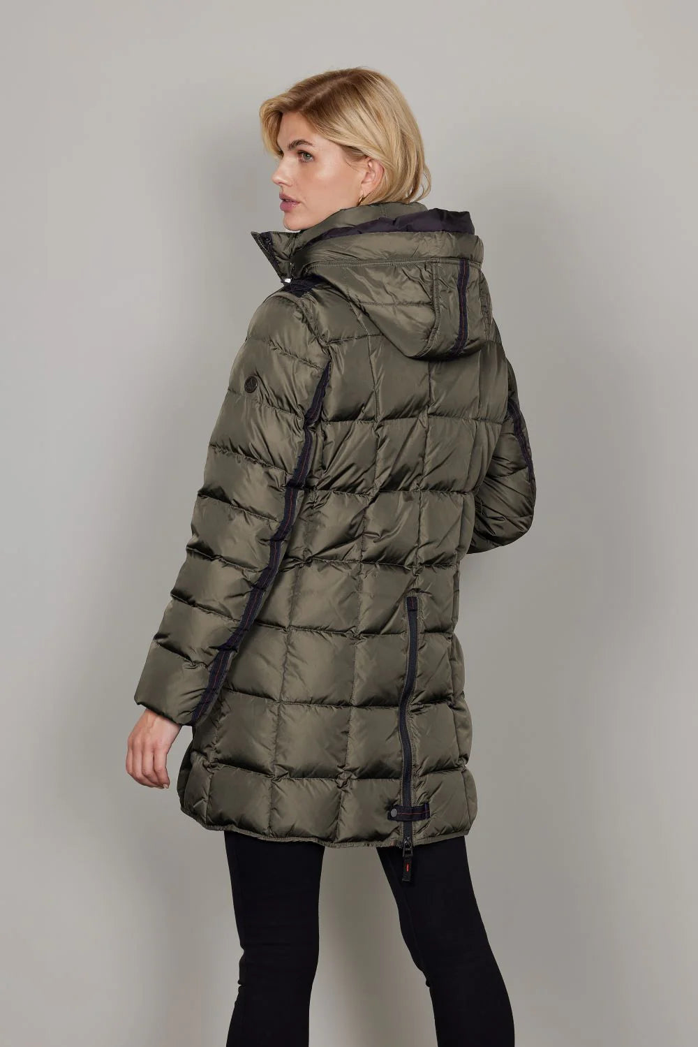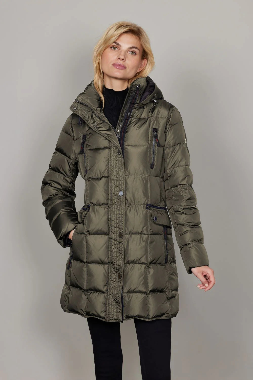 Med sitt lätt glansiga, vattenavvisande tyg och effektfulla kantdetaljer erbjuder Mary både lyx och funktionalitet för kallt väder.