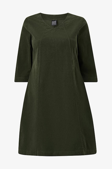 Klänning i manchester med v-ringad hals