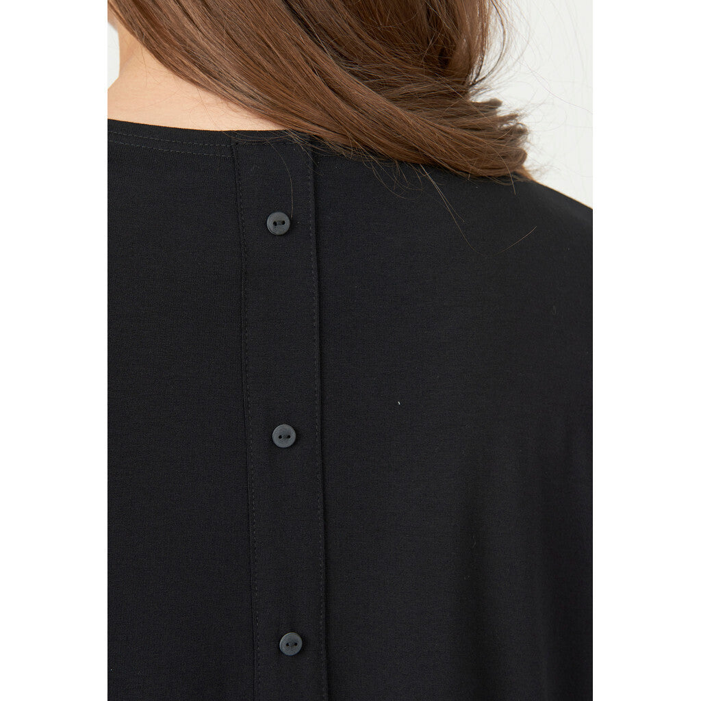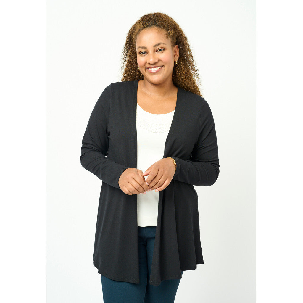 Den mjuka, a-linjeformade koftan är ett bra komplement till vilken garderob som helst, och knappdetaljen på baksidan ger koftan en rolig twist. Koftan kommer i olika färger, så det finns en för varje tillfälle.