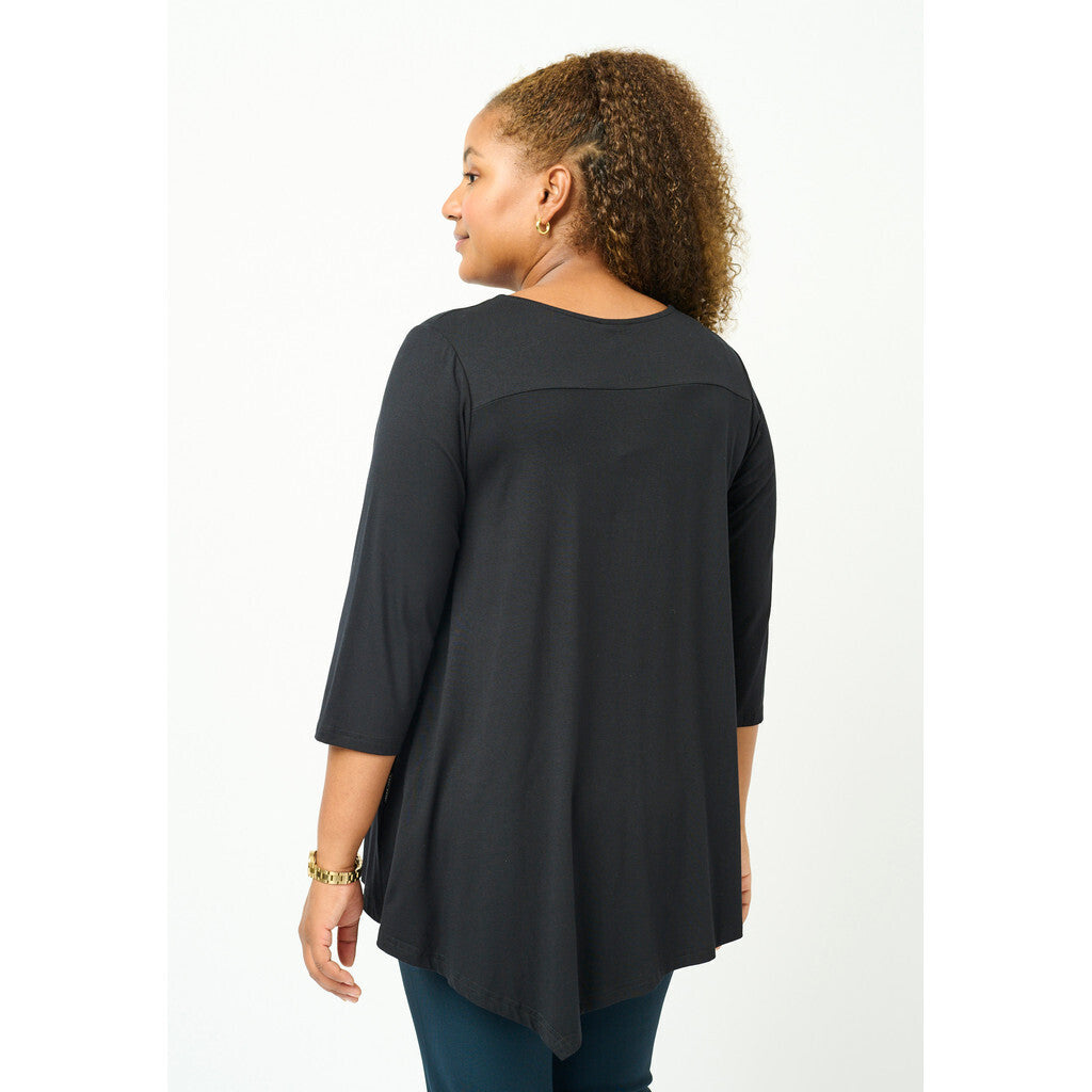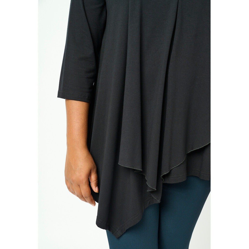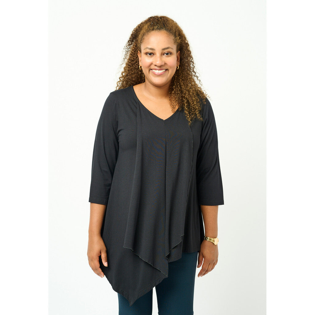 Vacker blus med 3/4-långa ärmar och en fin V-ringning. Modellen är löst sittande och har ett fint fall framtill. Blusen är något asymmetrisk nedtill och är sydd i en härlig viskoskvalitet med stretch. Den fantastiska designen passar perfekt till ett par byxor eller jeans och stövlar med klack.
