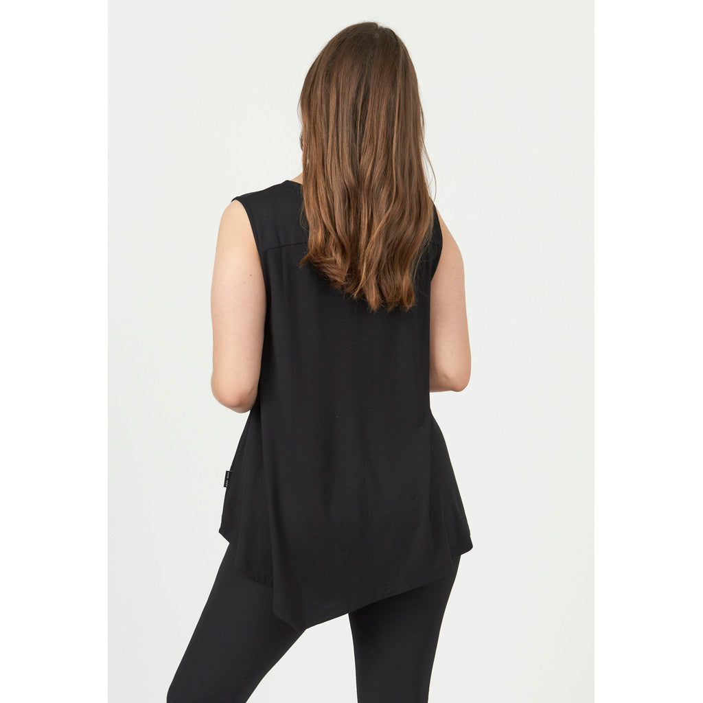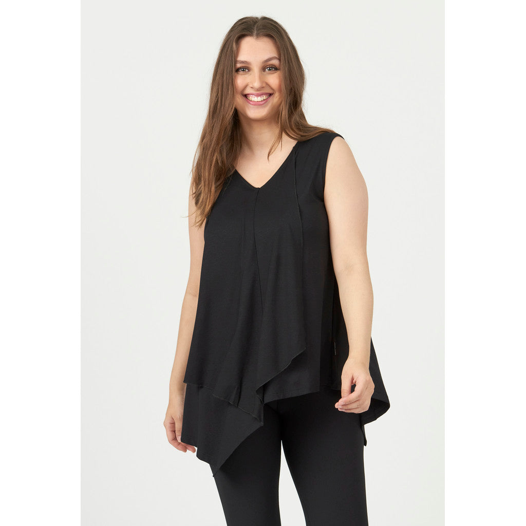 Ärmlös topp med feminin v-ringning. Modellen är löst sittande och tillverkad med två extra triangulära delar framtill som faller fint framför kroppen och skapar ett superfint och smickrande utseende.