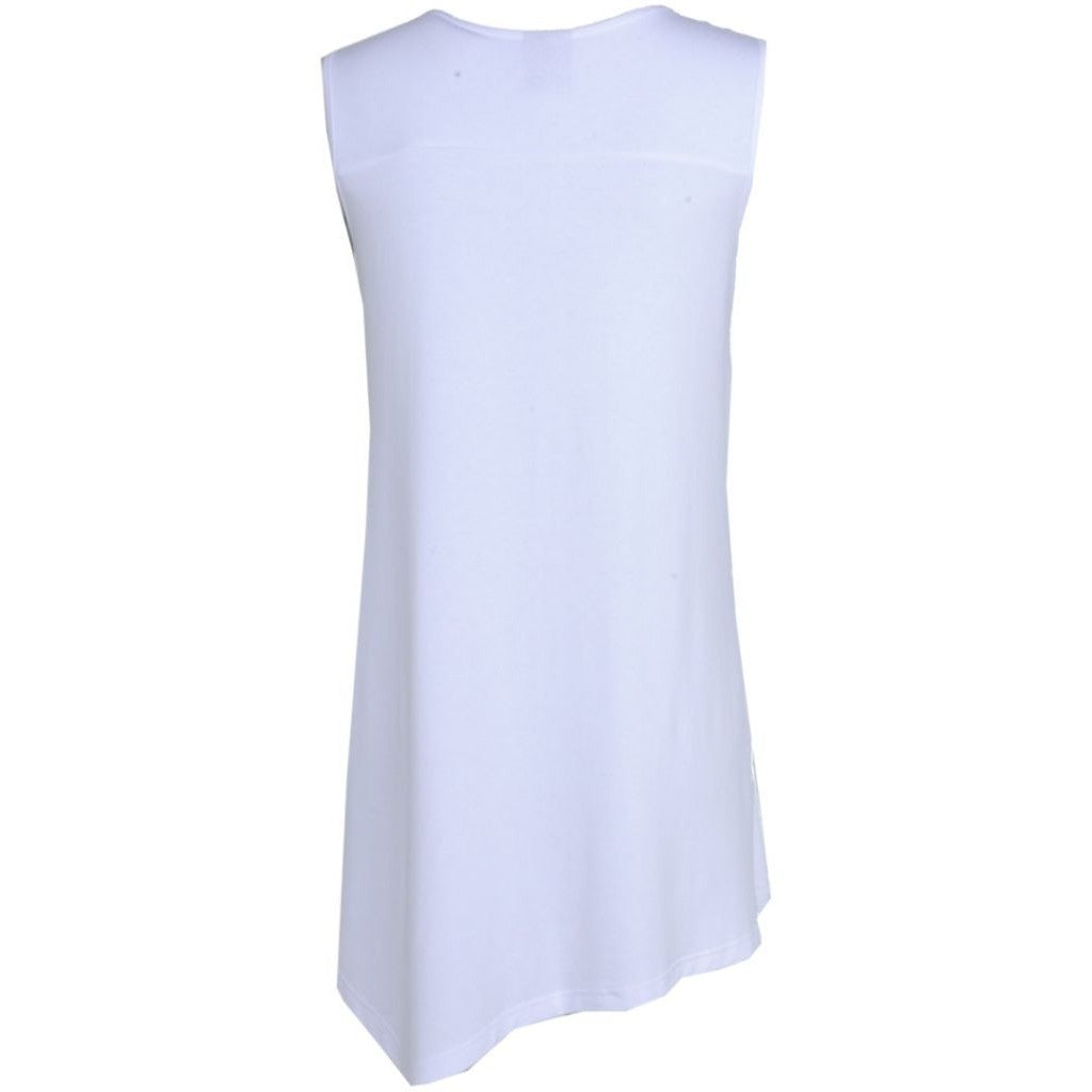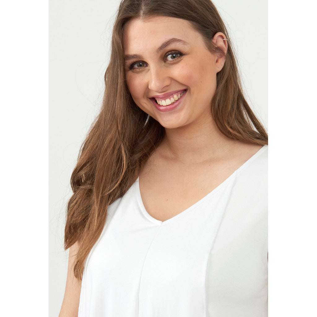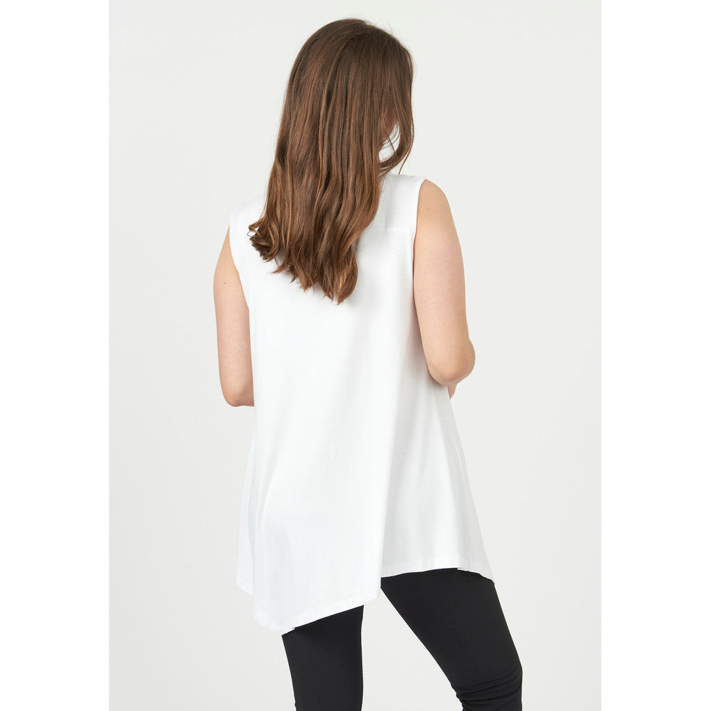 Ärmlös topp med feminin v-ringning. Modellen är löst sittande och tillverkad med två extra triangulära delar framtill som faller fint framför kroppen och skapar ett superfint och smickrande utseende.