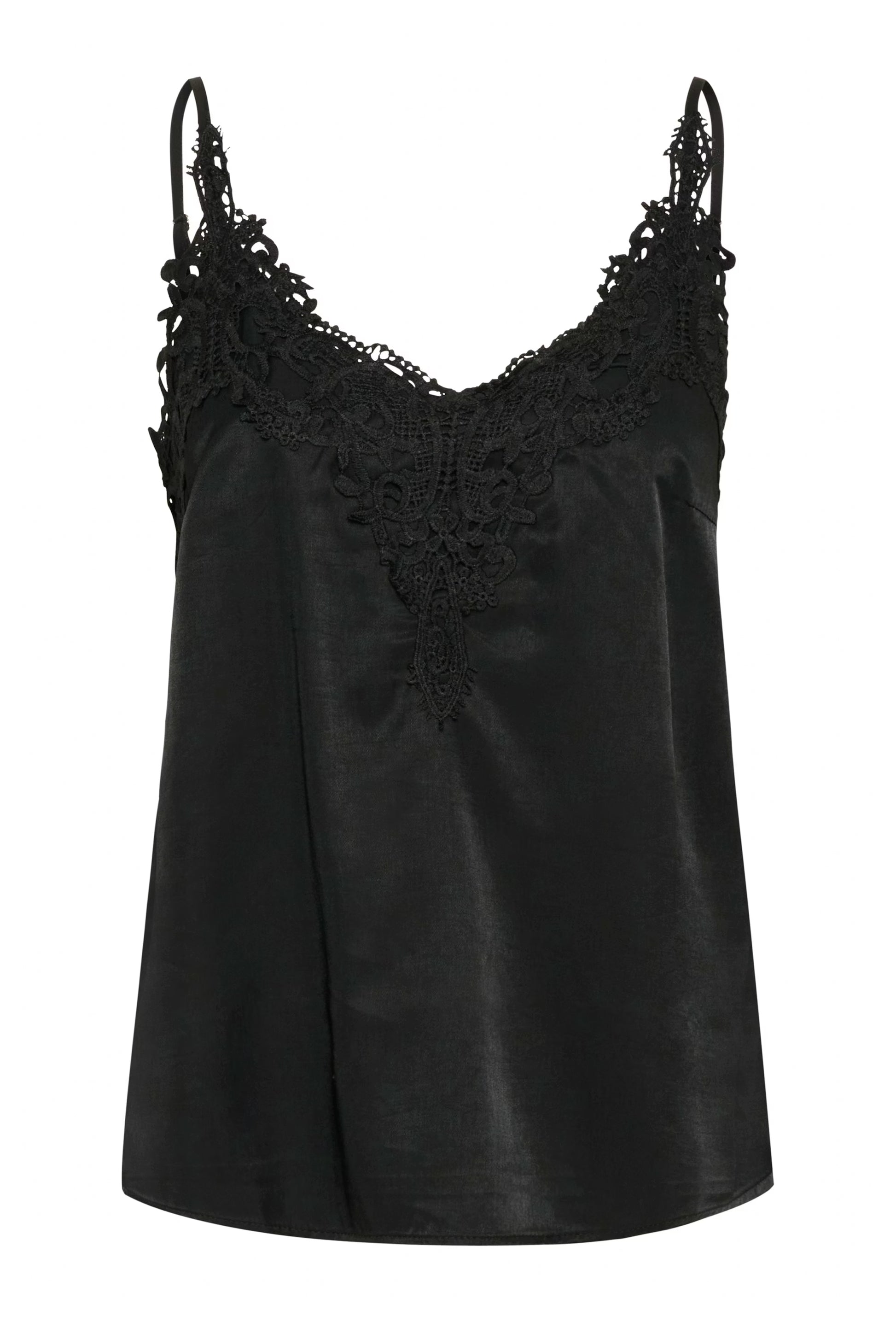 Denna eleganta ärmlösa blus från Cream är perfekt för en sofistikerad look. Dess A-formade snitt och höftlängd kompletteras med axelband för en feminin touch. Bär med en fin kofta och ett par bekväma jeans för en stilig outfit. Modellen är 176 cm lång och bär storlek 38/M.
